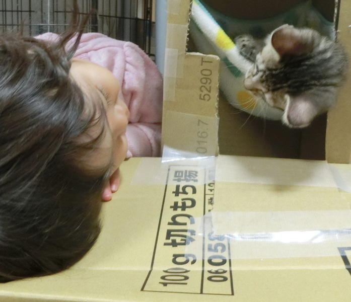 段ボール構造物に興奮したのは、リュウよりむしろ 子 ど も 。