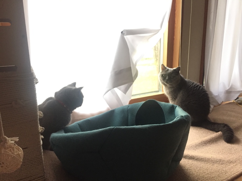 私の勝ってな思いだけで、 この田舎の家に暮らす事になってしまった2猫達。 『安住の地ですよ』と、思い過ごしているのは人間にたまたま生まれた私の勝ってな考え。 果たして、2猫達にとって ウチで暮らす事は幸せなのか? 心地良いのか? 楽しいのか? 本当はどうなのか、知るよしもない。 お互いに妥協しているのかもしれない。 そんなこんなを考えている最中、 何気に主人が2猫を手なづける。 不思議。
