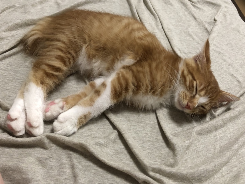 ぼくくんはペットのおうちで里親募集されていたのに応募して、今月家族になった子です。 7月生まれのとても活発で、明るい性格の茶トラ白の子です