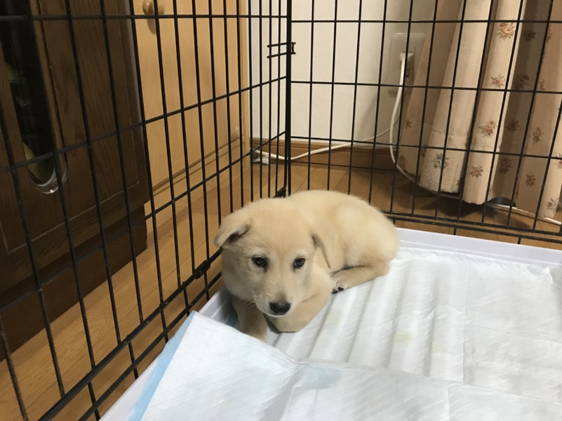 三女と四女が「子犬を飼いたい」とお願いしてから約5年。父の単身赴任が終わり、念願叶いました。まだ怖くてゲージの隅でじっとしています。