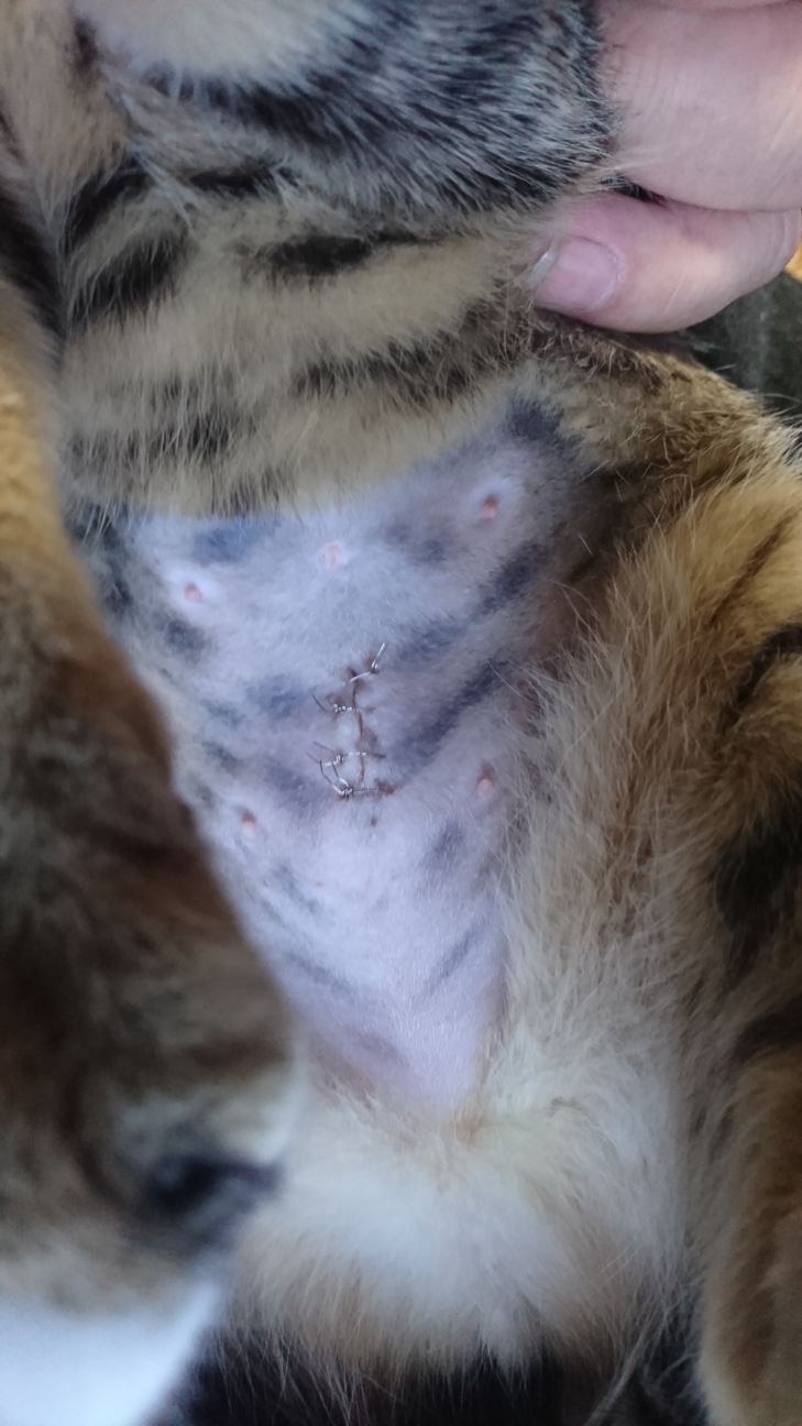 まだ傷口がくっついてないから、おいちゃんとの激しいお遊びはしばらく我慢してね。