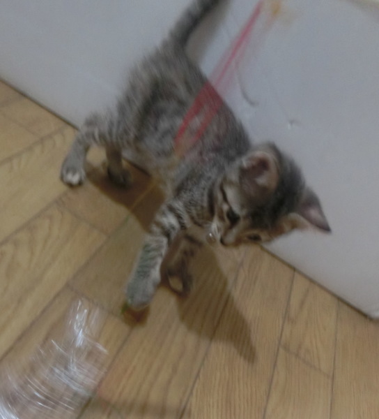 輪ゴムをつなげて手作りおもちゃを作っていたところ、途中でヒメが我慢できなくてじゃれついてきてしまいました。。。 もういいよこれで><;