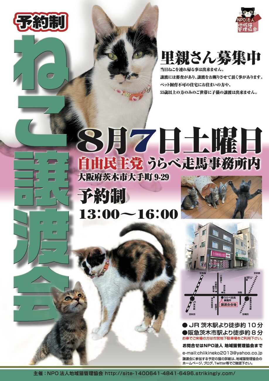 地域猫管理協会Amebaブログ予約フォームよりご予約をお願いいいたします。