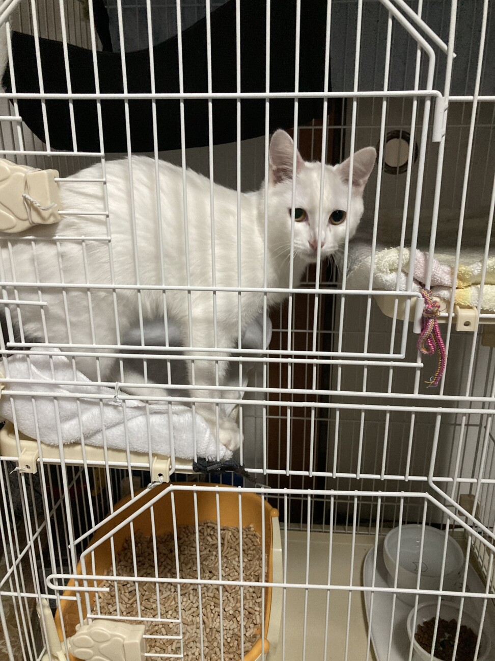 6月1日に家族が増えました。 白猫の里親になり猫が3匹となりました。 まずは先住猫との相性を見る為、しばらくはケージを中心とした生活を送ってもらうつもりです。