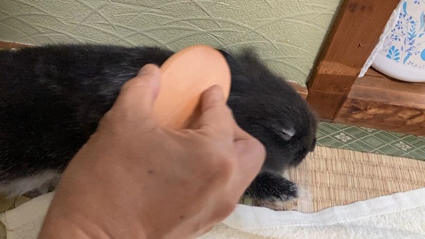 1、警戒が解けてきていっぱい遊んでます。ブラシを近づけて・・・