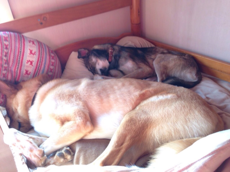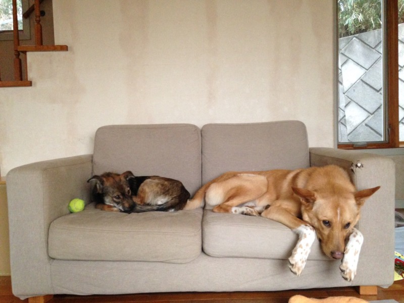 すると!マディはいたずらや遠吠えがめっきりなくなりミックのお世話をよく焼くお母さんのようになりました。飼い主としてはあんまりお利口すぎるのも寂しいんですが(^.^)