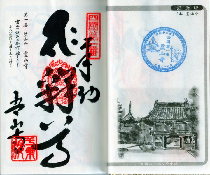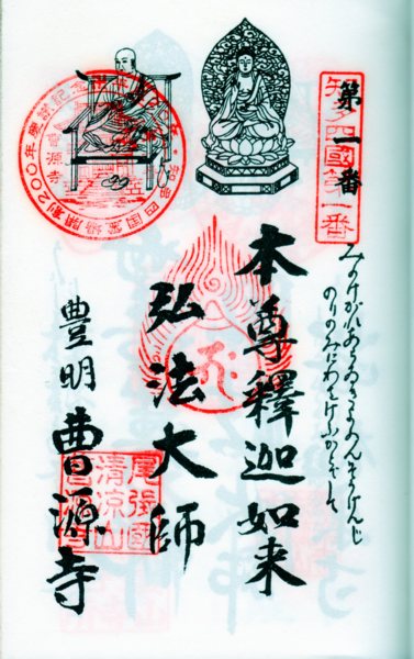 黒い字と絵は印刷されていて朱印だけいただく(左上の印は2010年の開創200年記念印)
