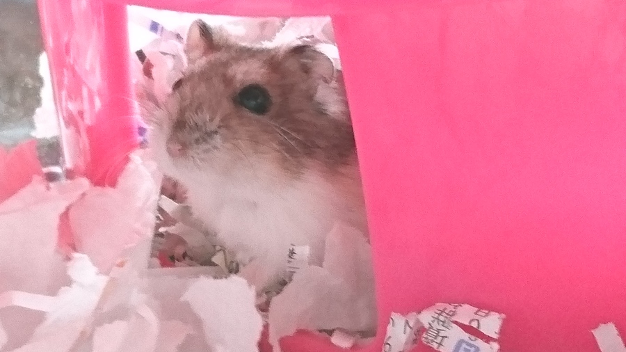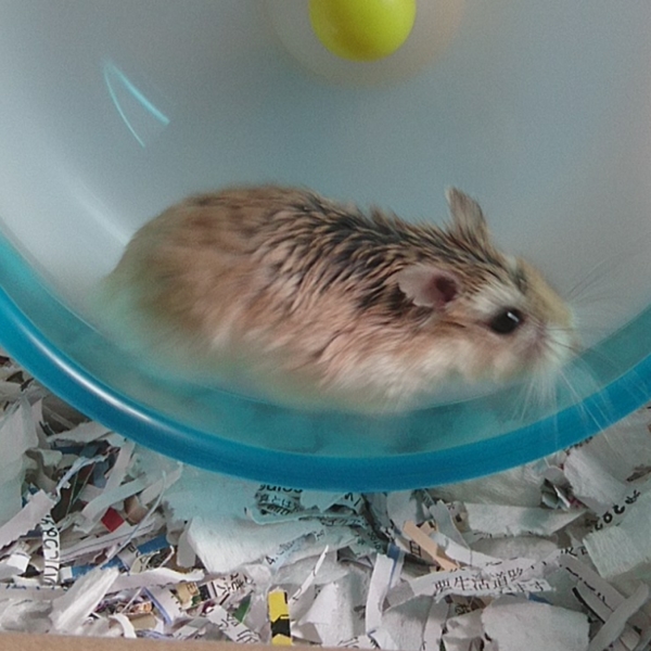 暑い最中の移動でしたが、我が家に到着後、様子を見ていて、元気そうにケージ内を動き回ったり、ホイールを回していたので一安心。