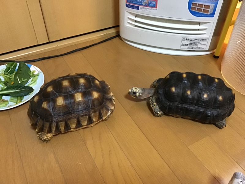 2019/3/18 里親募集よりお迎えさせて頂きました。 ステキな出会いをさせて頂き、本当にありがとうございました!! ケヅメリクガメのレディです。 名前は春にお迎えしたので、「コハル」と改めて名前をつけさせて頂きました。 入って早々でアカアシ君に求婚されてタジタジでしたが、仲良くしていけるよう配慮していきます!!