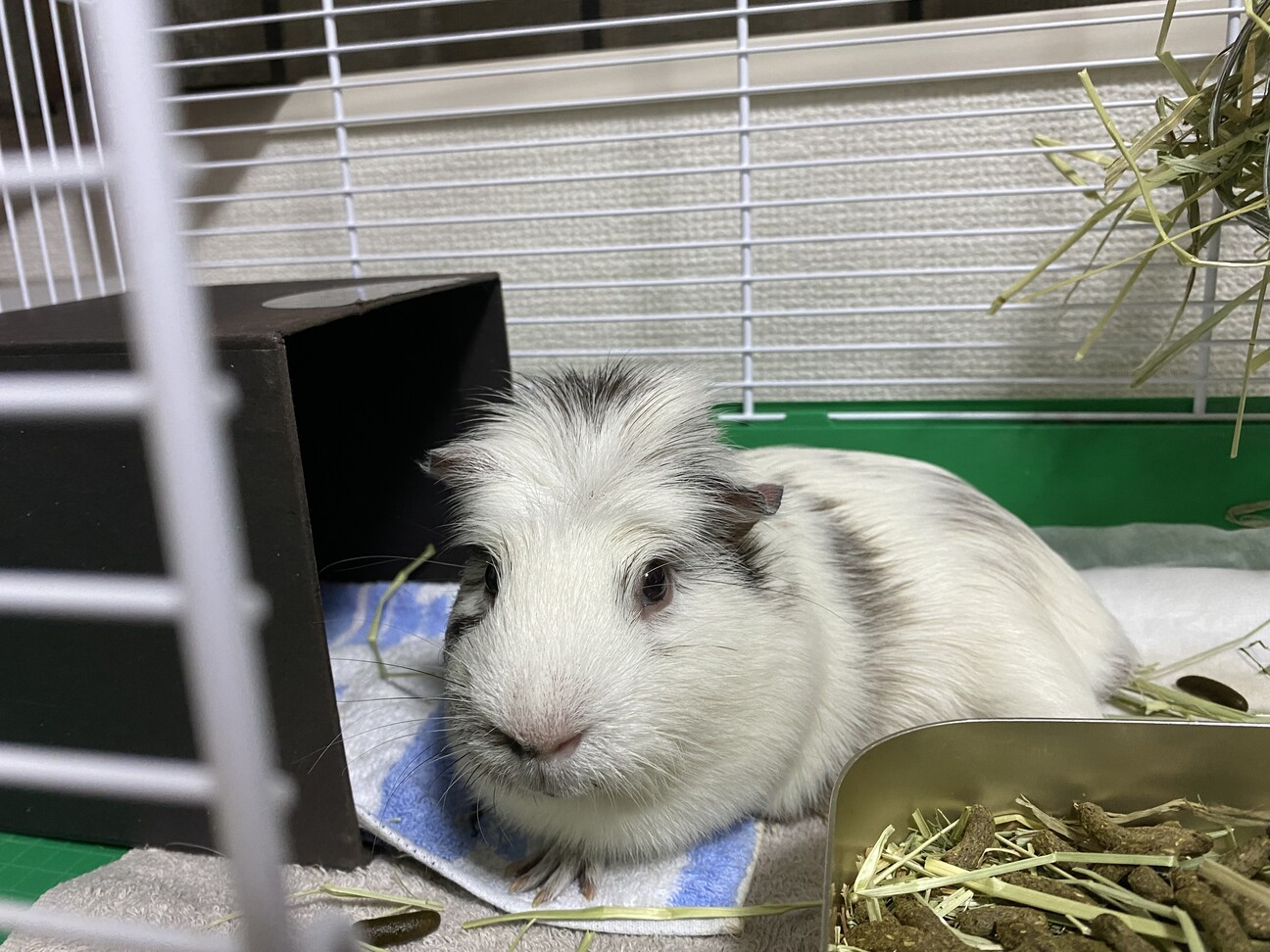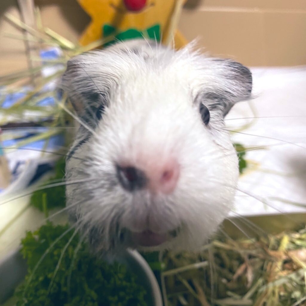ほぼ1ヶ月経ちまして、マーブルの臆病な性格は変わらずですが、食べ物に目がない子で、迎えた日より30g体重を増やすことに成功し、ピーマンとレタスが大好物とのこもを知り、今は「今日はどの野菜にしようかな」と、(わたしが)楽しい日々です。
