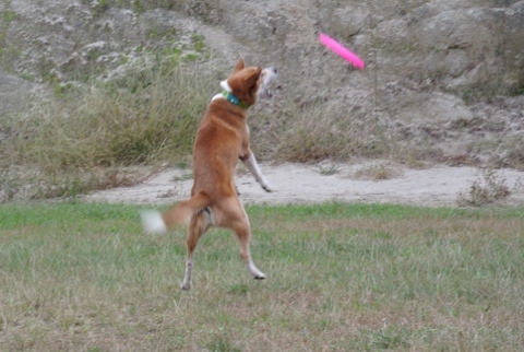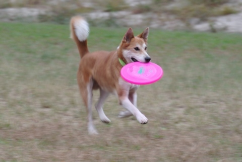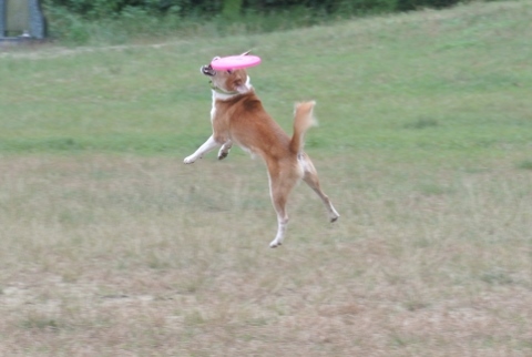 博士、強化合宿開始! 次回11月13日のチャレンジカップは まだレトリーブクラスで出場しますが、 その後は、いよいよディスクを空中キャッチして持ち帰ってこなければ点数がもらえない チャレンジクラスにレベルアップしてエントリーします。 そのための、空中キャッチの練習が始まりました。 今のところまだ、 目算を誤ったり、タイミングがずれたりして、 成功率は3分の1以下程度ですが、 博士くん、意欲は満々! しかも素質もあり! ということで、 ますます表情も凛々しくなって頑張っている 保護犬の星、博士くんでした☆☆☆