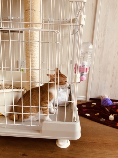 お留守番の時にケージに、入るので コレでも水が飲めるように 練習しました。我が家に来て2日目です
