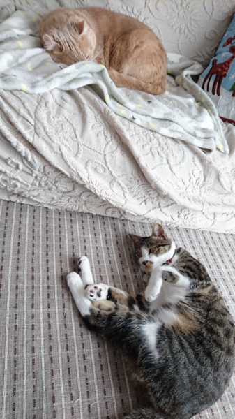 あんまり気持ち良さそうなので、2階の毛布で寝ていたジェリーも呼んでみると、ジェリーは『そんなことよりアタチ可愛いでしょ?ね?ここらへんからみたらアタチ余計可愛いでしょ??』