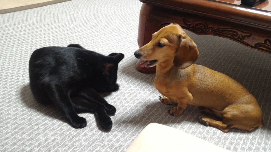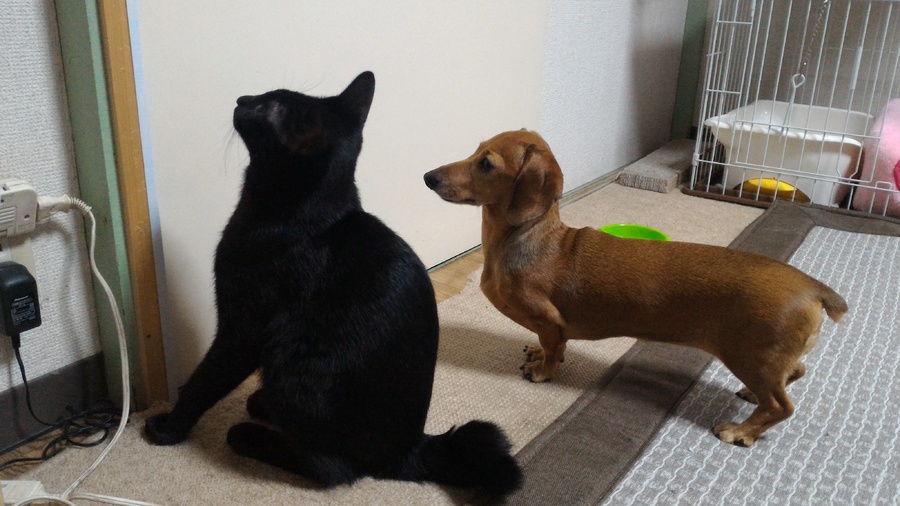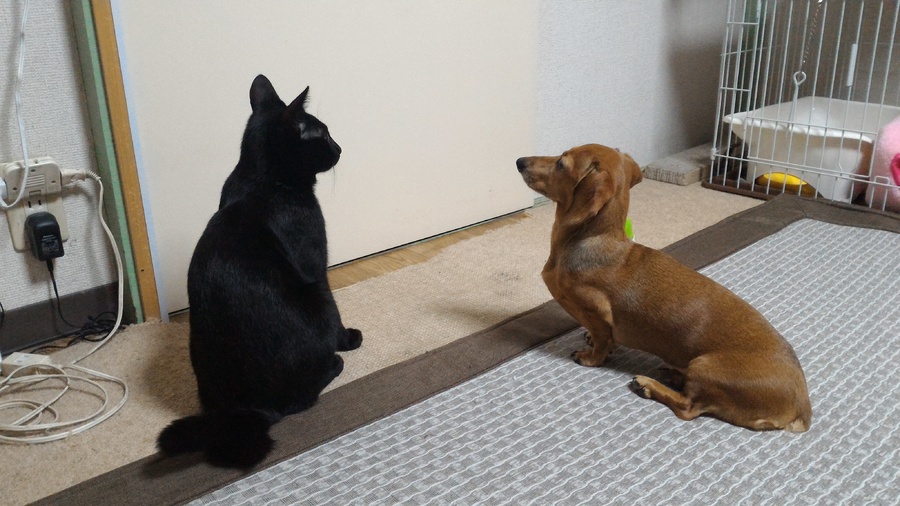 2016年10月21日 もうすぐ夜ごはんの時間。扉の向こうでごはんの準備してます。 今か今かとごはんを待つもなかとピッコロ!