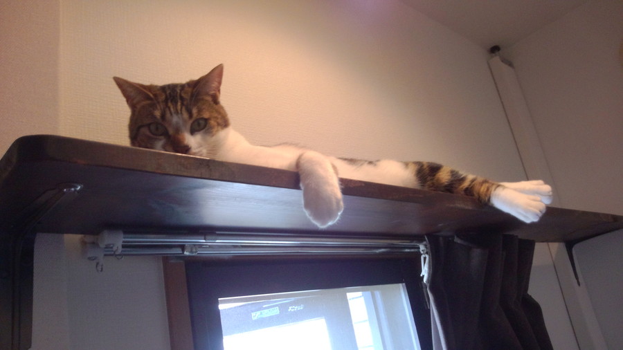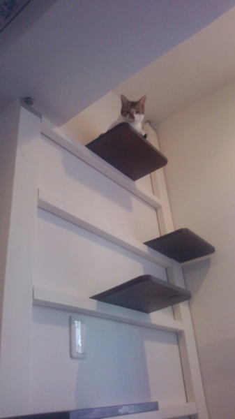 その先のキャットウォークで寝るために、そーっと上り下りはしてくれるものの、