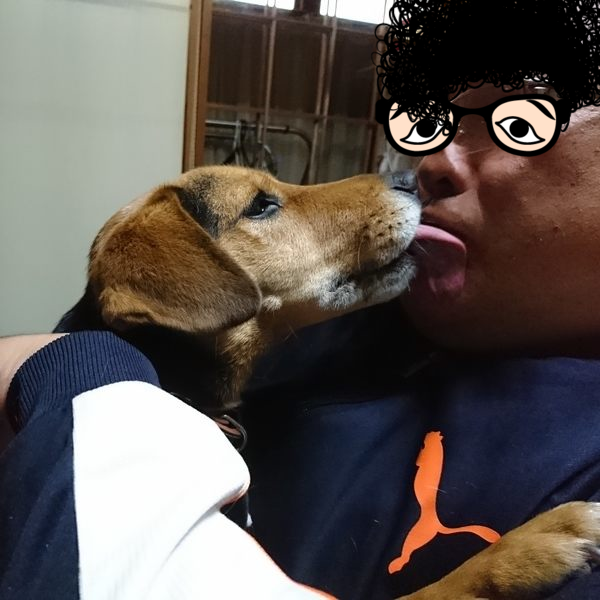 ボクは、おじいちゃんをペロペロするのが大好きです。【写真1】