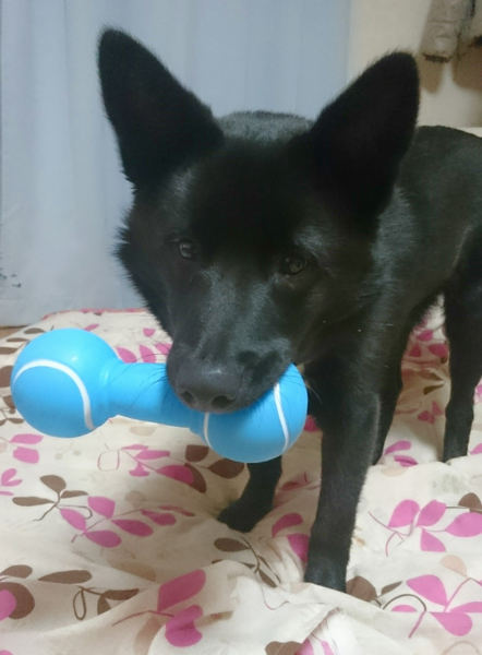 犬の太郎丸には『ダンベル型のおもちゃ』