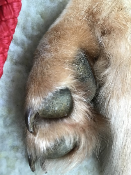 爪を切らなきゃいけない長さの基準はわからないけど、実家の柴犬に比べると結構長いし、尖ってて痛い!