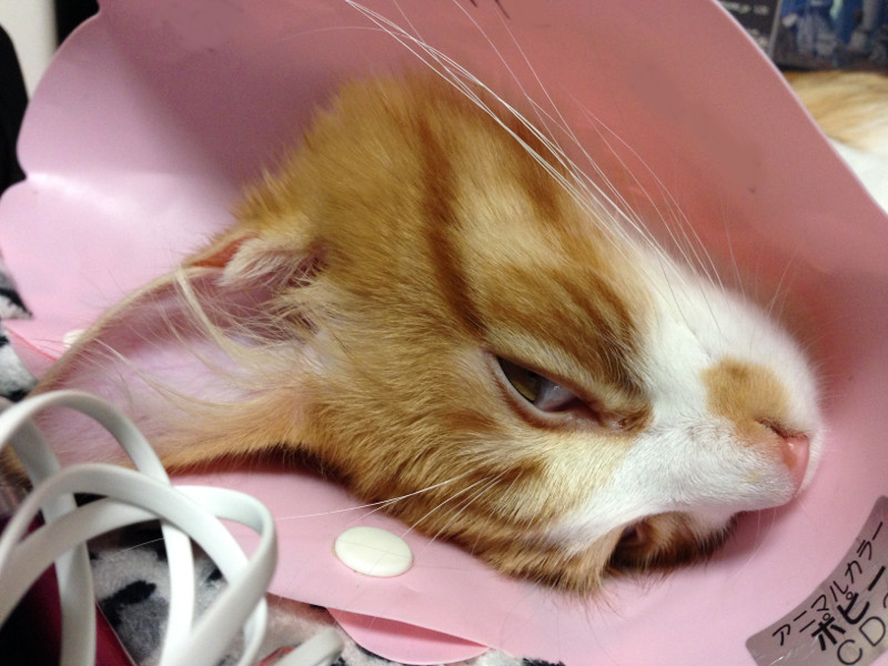 と、先日避妊手術をしたのでカラー装着なわけですが、気が付くとカラーが外れてフリーになっていることがあって困ります。