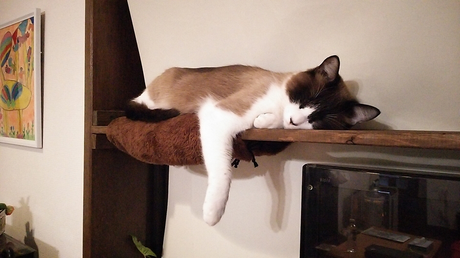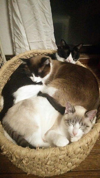 写真①ホカホカのリビングでは、ニャンズも脱力で寝ております♥