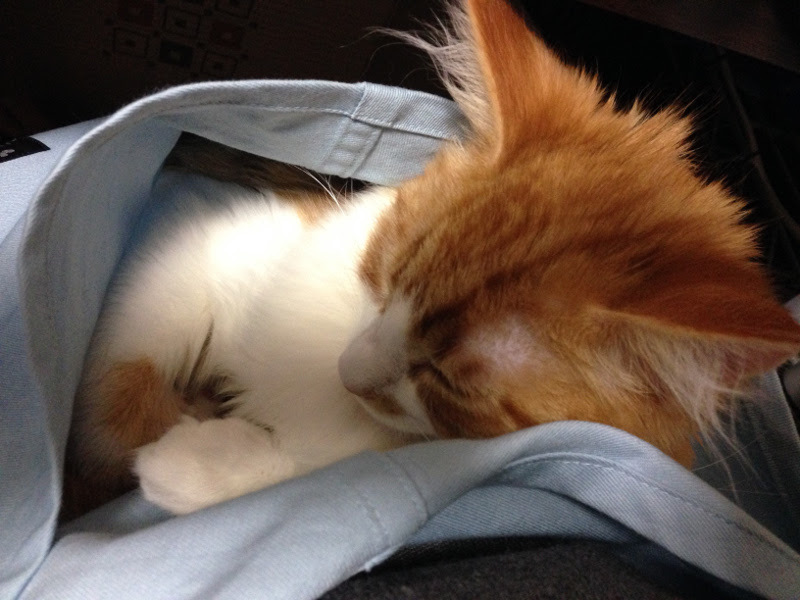 そしてカラーも外れたので久しぶりにキャットスリングを出してみたらちゃんと覚えてたようでいそいそと入ってきました(殺人的かわいさ)