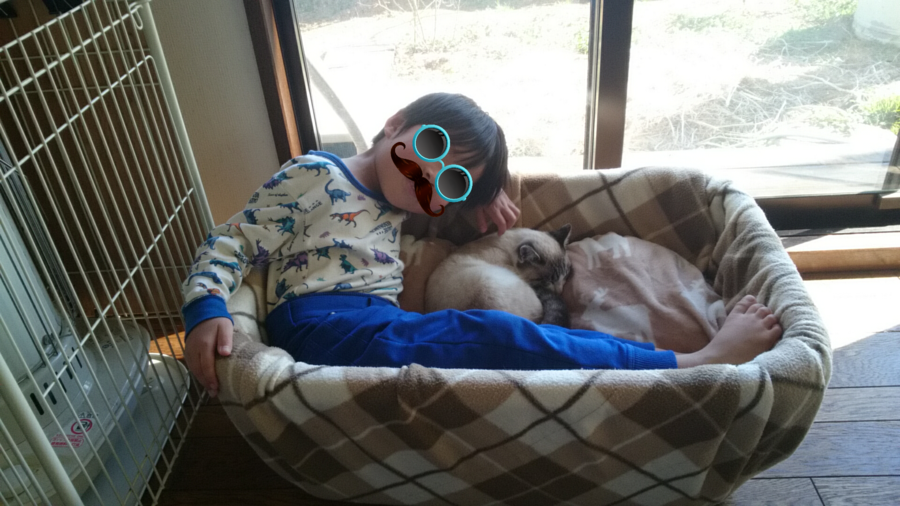 写真① 今月6才になる息子もスッポリ収まる猫ベットです☆