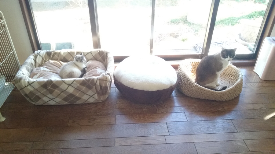 ニャンズが3匹になり、有り難いことに仲良く寝てくれるものだから ベットが小さくなりました。