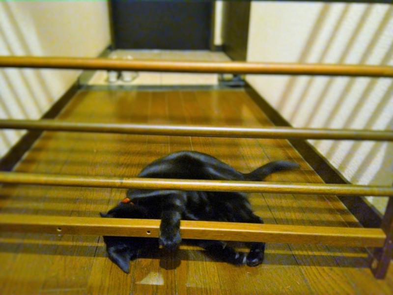 今回はクーちゃんがヒョイと玄関ドアの隙間から外へ出ないように脱走防止柵を作ってみました。