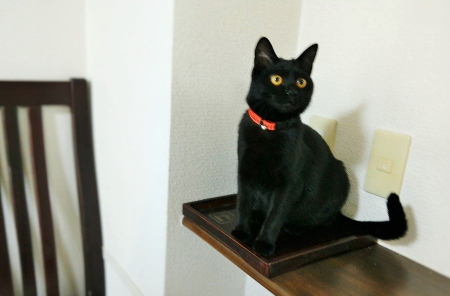 深夜に電気をつけて蚊を探していると、クーちゃんがどこからともなく現れてじっと私の様子をみていました。