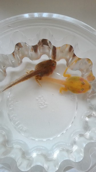 2匹して赤虫を食べる食べる(笑) だいぶ後ろ足もしっかりしてきて、背中にも模様が出始めました! オタマ期もあと僅かです(*^-^*)