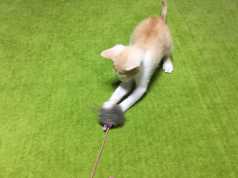 そうしたらミルクティーが堂々と出てきてくれて、ネコのオモチャで遊ぶ遊ぶ♪( ´▽`)