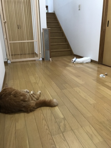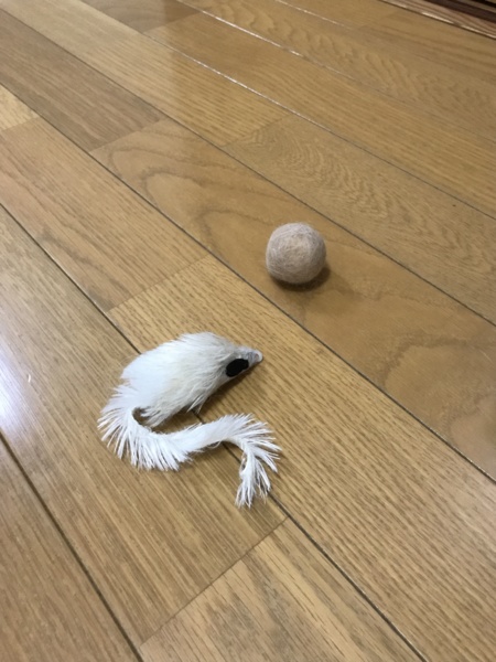 数日前に、グルーミング後の抜け毛を圧縮しながら丸めてボールを作ったところ、マリーの心に火をつけたようで、ハンターになりました。やはり、自分たちの匂いのする素材は、初めから馴染みがいいのかもしれません。ティッシュを丸めたものでも遊んでいたとの旦那証言もあったので、案外お金をかけずとも、身近なもので遊んでくれるものだと思いました。