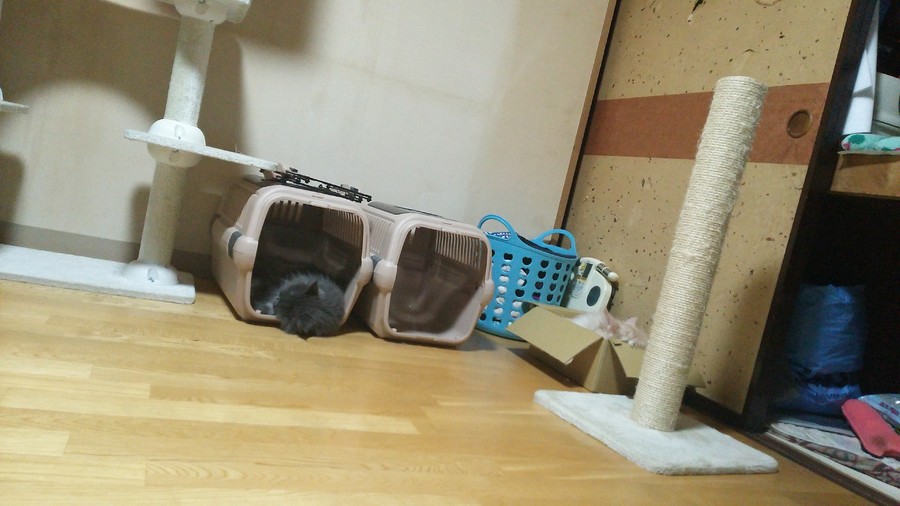 普段私が寝てる最中は一緒に寝たりしてて、今日みたいに荒ぶる事はないんですよね。(「寝させろ!!」と怒られるしw)