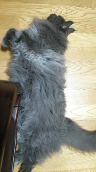 出来る限り近付いて寝転んでるストーカー。ソファーあれば一緒に寛げたんですけどね~残念ですね~。
