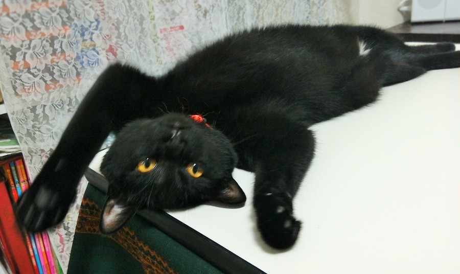 少し前なら素早く降りて「遊んで!」とオモチャを咥えてきたのに、この暑さだから仕方ないですね。
