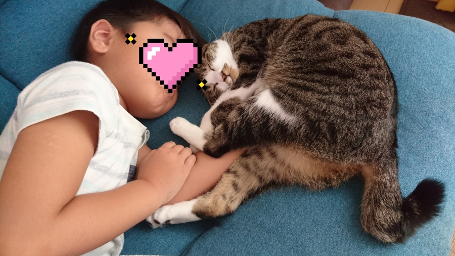 末っ子とお昼寝は夏休みになって当たり前になりました。ジェリーもなかなかのママっぷり!
