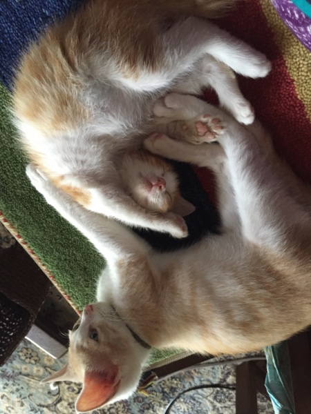 多忙過ぎて、ずいぶん久しぶりの投稿です。 多忙ですが、にゃんずのお世話はちゃんとしています‼️ で、にゃんずはこんなにでっかくなりました✨ ミルクティーは青年?になり、今月6日に去勢、来月はクッキーの番です。 食欲旺盛で、ミルクティーは体重3.8キロもあります。 ミーはクーの良いお兄ちゃんで、よく面倒をみてくれます。エサは2つ用意しますが、クーがまず好きなだけ食べて、それをミーが見守り、クーが満腹になってからミーが食べます。ミーが可哀想なので、こっそりミーにだけエサをあげたりします