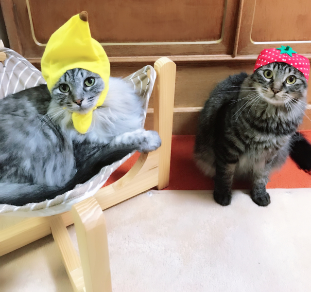今年の春、猫を二匹飼っている知り合いの小さな女の子から、ガチャガチャの猫のかぶりものシリーズのねこフルーツちゃんのバナナを貰った(^^)
