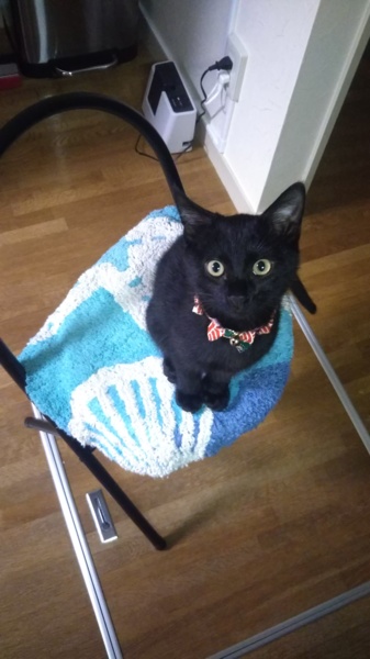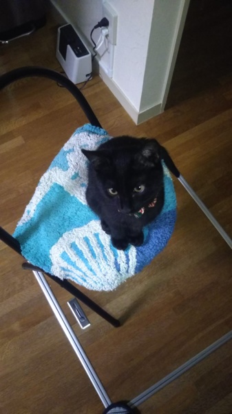 台所の前に私の休憩用の椅子に最近良く居るジジ。