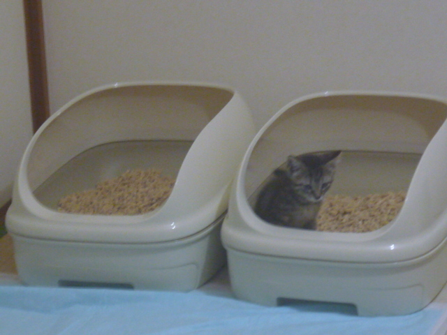 あと日中、仕事でお留守番をしてもらってるので兄妹猫ちゃん達が快適で清潔なトイレライフを過ごせるようにトイレも増設しました(*´∀`)ノ