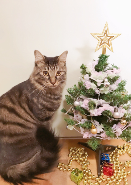 ところが今年はクリスマスツリーだけまずは撮影しようとしたら、ルディが隣でスタンバイしてたww(*´∀`*)撮ってよと言わんばかりのポーズで!