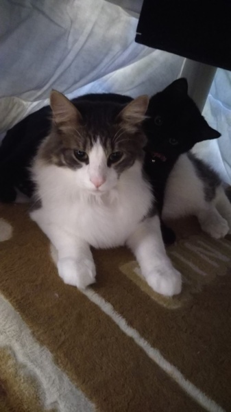 ジジもツナもいないなぁと思ったら二人でこたつの中に潜りこんでます(о´∀`о)中で寝たり格闘したり楽しそうです。 2階の私の寝室に以前ツナに買ったベットをジジも最近使うようになって可愛いです。 今週来週が休みがほぼないので触れあう時間が少なくツナがいつも以上に側にベッタリ。ジジもさりげなくきたり淋しいんだろうなぁと申し訳ないです。。 年末の休みまでもう少しなので時間ある時しっかりかかわろうと思いました。 ジジも小さい鈴をつけました(^^)居場所がわからなくなったことがあってパニック事件からつけました。