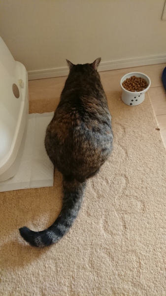 段ボール爪とぎ板1枚を新品に交換していたら、さっそくひまわりが来て、クンクンと調査を開始。そこへ福にゃんがやってきて、「なになに?私にも見せてよー」と言うように周りをウロウロ。ちっとも動かないひまわりに小さく「シャー」して、新爪とぎの調査権を奪取!!