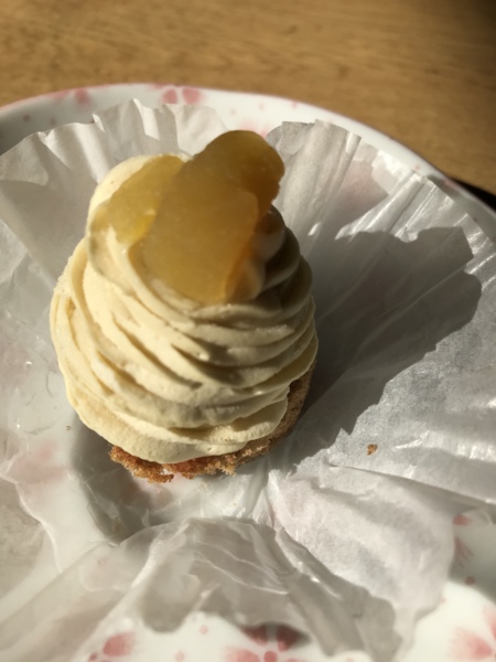 食いしん坊のあざみが寝てる間に、小さな小さなさつまいものモンブランを撮影しました。