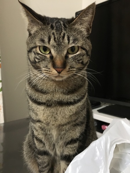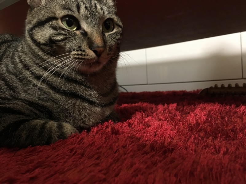 常に凛々しいお姿で距離を保ちつつ訴えかけるように見つめ、台所に立つ私を冷蔵庫の上から見下ろし、旦那がくつろぐソファー前のカーペットでだけデレる…。