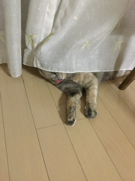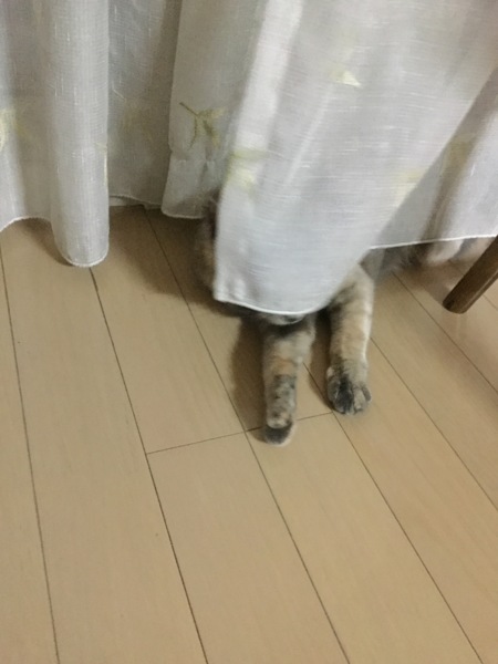 写真のはカーテン裏に隠れるリンさん。
