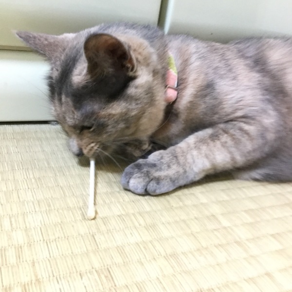 マタタビの粉を綿棒に浸して渡すと、