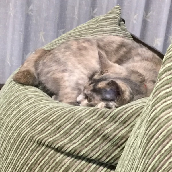ある程度、なめたら寿一顔のまま、お気に入りの窓辺が見えるソファーに(写真3)