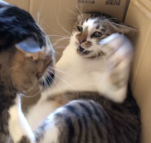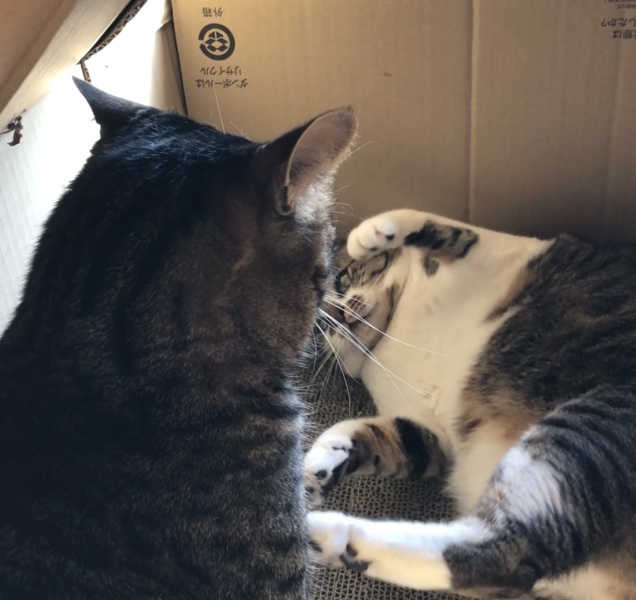 ゲン汰さん「おじゃましますぅ〜」 ドン介さん「Σなに入ってきよん?」 ゲン汰さん「そんな事言わんでもよかろ〜?仲良くしよや〜」 ドン介さん「イヤっち ゆーとろ〜?こっちくんなー」 ドン介さん「ココは俺の陣地!!!!」 ゲン汰さん「そんな格好してまで守らんでもよかろ〜に…」 ※北九州出身ニャンコなので北九州弁を混ぜてみた