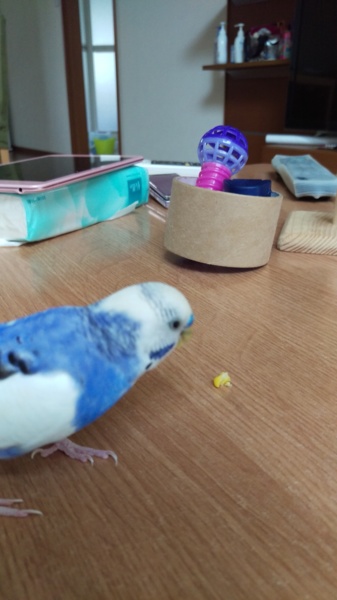 はじめてのとうもろこし とってもお気に入りみたいで、食いつきかたがすごい‼ もっと食べたそうだけど、1日1粒で我慢してね。